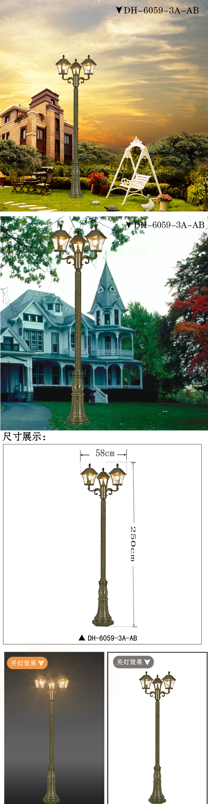 • 產(chǎn)品標題:歐式庭院燈 DH-6059-3A-AB